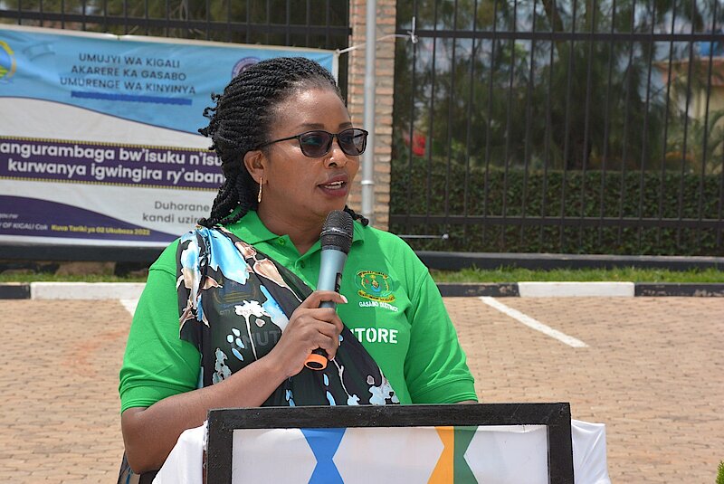 Umushyitsi mu kuru muri uyu muhango ya Umuyobozi Nshingwabikorwa w’Akarere Madam UMWALI Pauline.