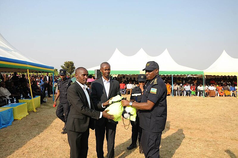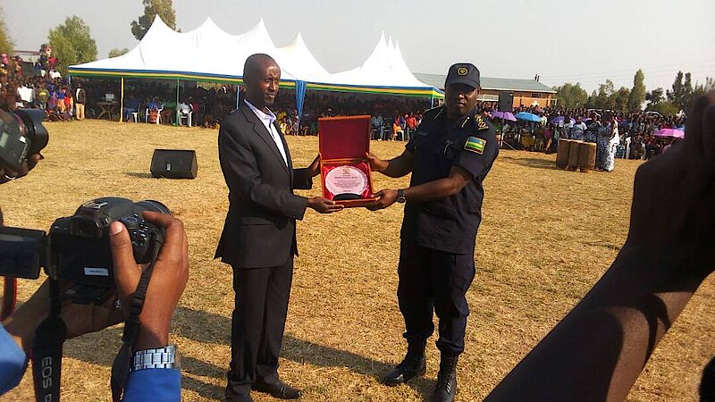 Polisi y’u Rwanda yubakiye ikibuga cy’umupira (stade) abaturage bo mu Murenge wa Gikomero.  Iyi “stade” ikaba yarashyikirijwe Ubuyobozi bw’Akarere ka Gasabo ku mugaragaro. Uyu  muhango ukaba waritabiriwe n’abanyacyubahiro batandukanye barimo : Nyakubahwa Minisitiri w’Umuco na Siporo Madamu Uwacu Julienne akaba ari nawe mushyitsi mukuru, Umuyobozi mukuru wa  Polisi y’Igihugu IGP Gasana Emmanuel, Umuyobozi w’Akarere ka Gasabo bwana Rwamulangwa Stephen, Umuyobozi wa Komite Olimpike Bwana Munyabagisha Valens n’abandi bayobozi batandukanye muri Polisi y’Igihugu. Iki kibuga cyubatswe mu gihe cy’amezi arindwi kikaba cyaratwaye amafaranga angana na miliyoni ijana na mirongo itanu n’eshatu (153,000,000 Frw ) y’Urwanda. Umuyobozi w’Akarere ka Gasabo bwana Rwamulangwa Stephen, yashimye cyane Polisi y’u Rwanda ku bufatanye badahwema kubagaragariza mu bikorwa bitandukanye biganisha kw’iterambere ry’Igihugu cyacu. By’umwihariko, yavuze ko iyi “stade” iziye igihe kandi ikinewe, kuko yubatswe kugirango izafashe urubyiruko rwo muri ako gace ariko noneho nabazaba batuye mu mudugudu w’icyitegererezo (IDP Model Village) wa Rudakabikirwa kuko biri mu rwego rwo kubegereza ibikorwa remezo. Kandi Umuyobozi w’Akarere yasabye abanyagikomero gufata neza iki kibuga kuko aribo gifitiye akamaro. Umuyobozi wa Polisi y’igihugu, yavuze ko iki kibuga cyubatswe kugirango Abanyagikomero bashobore kubona aho bidagadurira, ariko banamenye kwita ku mutekano wabo. yatanze urugero aho ajya ahura na moto ihetse abantu batatu batambaye Kasike n’ihene inyuma, yabasobanuriye ububi bwabyo anababwira ko bihanirwa n’amategeko. Umuyobozi wa Polisi kandi yabwiye abari aho ko umukino wa mbere uzakinirwa kuri kiriya kibuga uzahuza ikipe ya Polisi n’Umurenge wa Gikomero. Polisi yanatanze imipira yo gukina urubyiruko rwa Gikomero. Minisitiri, Uwacu Juliane yashimye cyane Polisi y’igihugu ku kibuga cyiza yubatse, anasaba abanya Gikomero ko kigomba gukoreshwa imikino irenze umwe. Yababwiye ko bagomba kukibyaza umusaruro, bakajya bakoresha imyitozo kugirango bajyee bashobora gutsinda kandi ko bizafasha na ba bandi bakoresha ibiyobyabwenge cyangwa bafite amakimbirane mu ngo zabo ko nta mwanya bazaba bagifite wo kujya mu bidafite akamaro. Minisitiri w’umuco yavuze ko gushyira ibibuga byiza nk’ibi mu nkengero z’Umujyi bitanga ubwinyagamburiro kuko nk’imikino imwe nimwe yo ku rwego rw’igihugu yajya ikinirwa ku bibuga nka biriya.