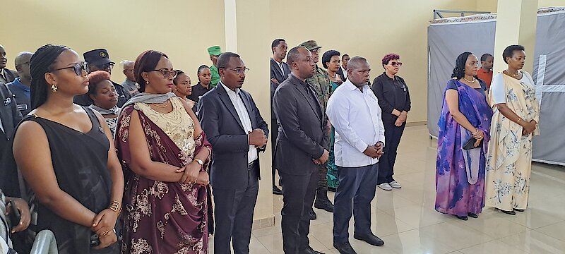 Umuhango wabanjirijwe no gushyira indabo ku mva zishyinguwemo imibiri y'abazize Jenoside Yakorewe Abatutsi.